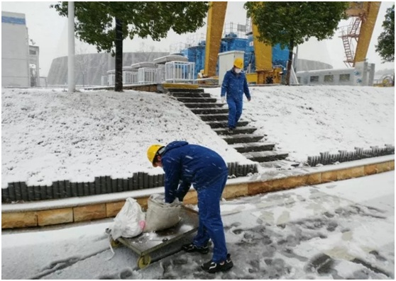 早在幾天前,一收到市氣象局發(fā)布的大雪預(yù)警信息后,楊坤就帶領(lǐng)著六值班組成員進(jìn)行相關(guān)重點(diǎn)區(qū)域的學(xué)習(xí)和操作。工作開始前,楊坤再三叮囑值內(nèi)成員要采取好防護(hù)保暖措施,預(yù)防風(fēng)寒感冒。大雪襲來后,楊坤第一時(shí)間帶領(lǐng)值內(nèi)成員在部門統(tǒng)籌安排下,前往生產(chǎn)現(xiàn)場清雪、撒鹽、鋪設(shè)防滑袋等相關(guān)安全保障措施。風(fēng)雪中,楊坤拿來了幾個(gè)大鐵鍬,在鍋爐12米的給煤機(jī)平臺(tái)上將凍上的冰面一片片敲裂,然后再順著雪一道鏟到通道的兩旁,最后撒上鹽,在相關(guān)區(qū)域鋪上麻袋。有人問他怎么做得這么熟練,他笑著說自己打小在東北的家鄉(xiāng)就干這些事。