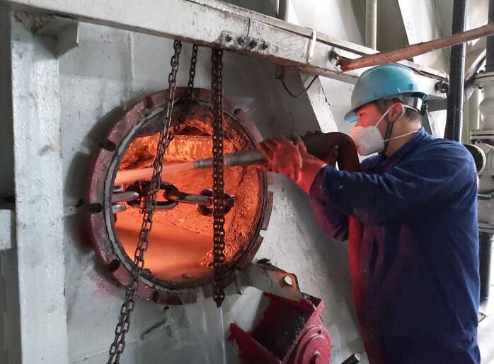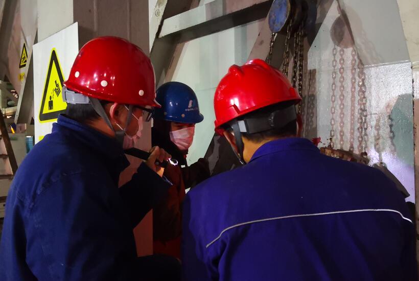 “目前來(lái)看,問(wèn)題只可能是撈渣機(jī)底板與導(dǎo)輪間隙有問(wèn)題或槽體內(nèi)刮板脫落,大家分頭重點(diǎn)排查這兩方面?!痹诖蠹颐H粺o(wú)措時(shí),生產(chǎn)副總經(jīng)理徐光學(xué)一語(yǔ)點(diǎn)醒夢(mèng)中人。鎖定“疑兇”,維護(hù)部副主任徐德剛迅速組織技術(shù)骨干研討。按照疫情防護(hù)需要,幾位專(zhuān)業(yè)行家距離一米以上,“吼”完了研討會(huì),并在較短時(shí)間內(nèi)擬定出三個(gè)處理方案,但所有方案的前提均是“確定底板情況!”