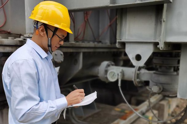 圖為運(yùn)行人員正在記錄設(shè)備檢查情況
