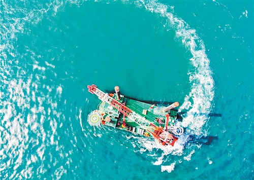 12月16日,由中國(guó)鐵建港航局集團(tuán)有限公司投資打造的國(guó)內(nèi)首艘1300噸自升自航式風(fēng)電安裝船“鐵建風(fēng)電01”在江蘇啟東交付使用。圖為“鐵建風(fēng)電01”大回轉(zhuǎn)試驗(yàn)。陳耀金攝(中經(jīng)視覺)