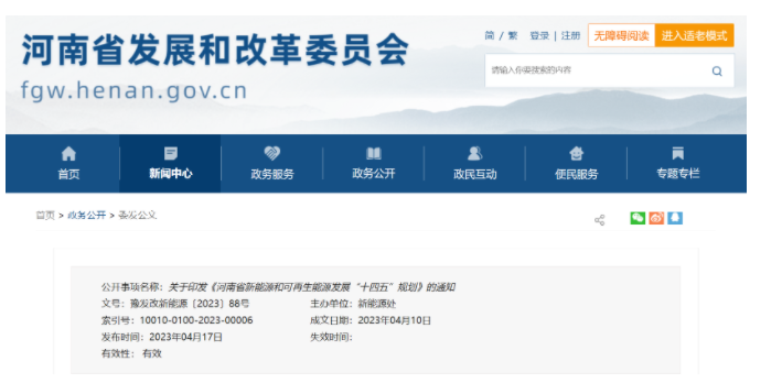 4月17日,河南省發(fā)展和改革委員會發(fā)布關(guān)于印發(fā)《河南省新能源和可再生能源發(fā)展“十四五”規(guī)劃》(以下簡稱“規(guī)劃“)的通知。