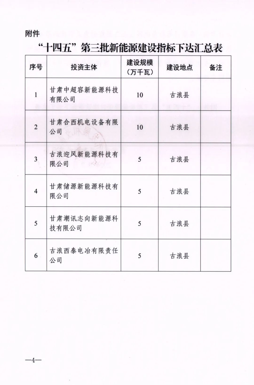 7月30日,甘肅省武威市發(fā)改委發(fā)布《關于下達“十四五”第三批新能源建設指標的通知》。