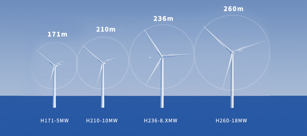 對(duì)于風(fēng)電場(chǎng)建設(shè)而言,H260-18兆瓦海上風(fēng)電機(jī)組可有效節(jié)約用海面積、降低機(jī)位點(diǎn)數(shù)量,進(jìn)而降低海上風(fēng)電場(chǎng)工程成本,為海上風(fēng)電走向深遠(yuǎn)海打下堅(jiān)實(shí)基礎(chǔ)。
