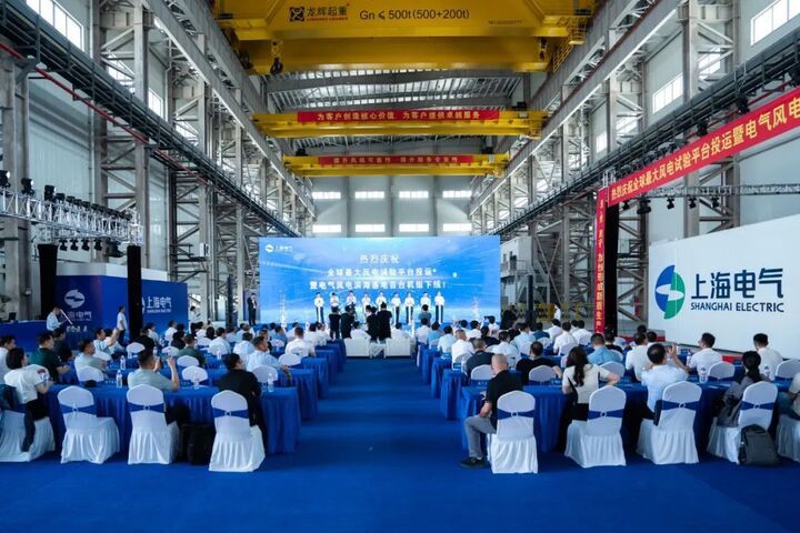日前,全球最大風(fēng)電試驗平臺——上海電氣風(fēng)電全功率平臺在上海電氣風(fēng)電濱海基地投運。當(dāng)天,上海電氣風(fēng)電濱?;厥着_機(jī)組同時下線。