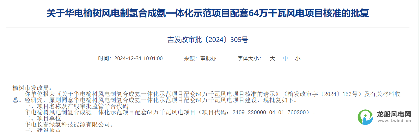 近日,吉林省發(fā)展和改革委員會(huì)發(fā)布關(guān)于華電榆樹風(fēng)電制氫合成氨一體化示范項(xiàng)目配套16萬千瓦風(fēng)電項(xiàng)目、華電榆樹風(fēng)電制氫合成氨一體化示范項(xiàng)目配套64萬千瓦風(fēng)電項(xiàng)目核準(zhǔn)的批復(fù)。