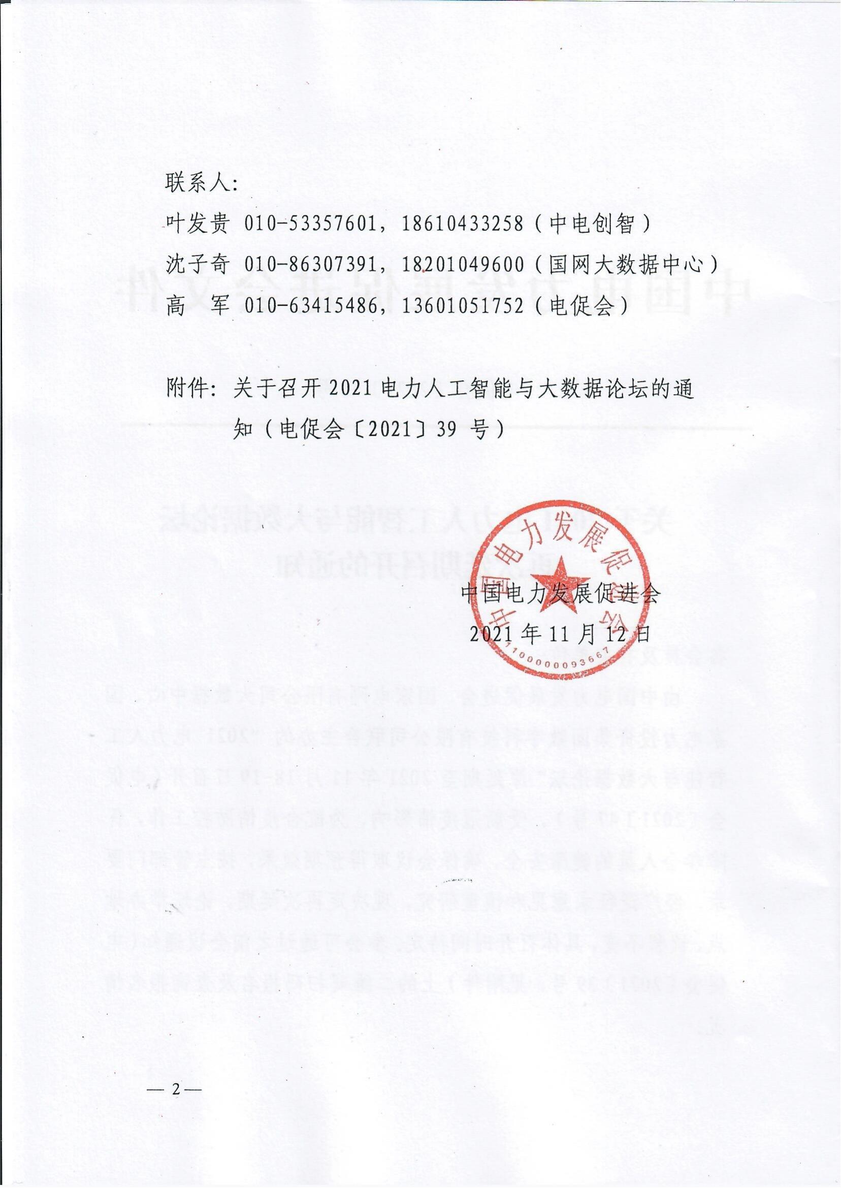 關(guān)于2021電力人工智能與大數(shù)據(jù)論壇再次延期召開的通知