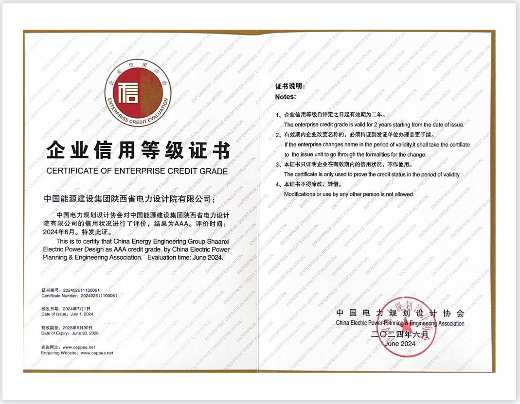 近日,中國能建陜西院獲評“AAA級信用企業(yè)”榮譽稱號。這是陜西院收獲的又一重要殊榮,代表了權(quán)威機構(gòu)及社會各界對該企業(yè)在誠信經(jīng)營方面的認可。