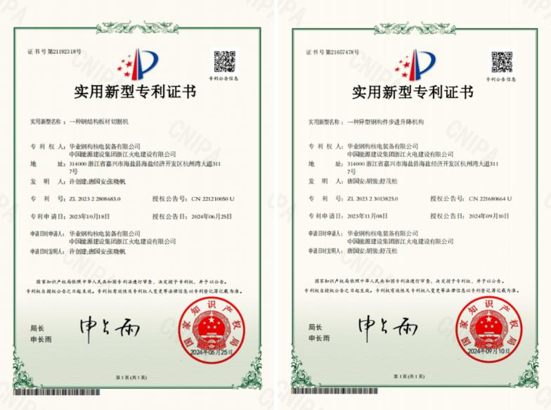 近日,中國能建浙江火電兩項發(fā)明專利《一種鋼結(jié)構(gòu)板材切割機(jī)》和《一種異型鋼構(gòu)件步進(jìn)升降機(jī)構(gòu)》獲得國家知識產(chǎn)權(quán)局授權(quán)。
