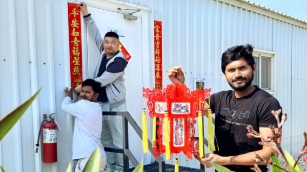 沙特國(guó)王港項(xiàng)目部精心策劃了一系列慶祝活動(dòng),讓中外員工共度歡樂祥和的中國(guó)年。團(tuán)拜會(huì)上,項(xiàng)目部向全體員工送上新春祝福,感謝大家的辛勤付出,并鼓勵(lì)團(tuán)隊(duì)在新的一年再接再厲,共創(chuàng)佳績(jī)。中外員工歡聚一堂,傾情演出,互致問候,現(xiàn)場(chǎng)氣氛熱烈喜慶。除夕夜,項(xiàng)目部組織了包餃子活動(dòng),大家紛紛動(dòng)手參與,搟皮、包餡、捏褶,忙得不亦樂乎。許多外籍員工在中國(guó)同事的指導(dǎo)下,第一次體驗(yàn)制作餃子的樂趣,感嘆這一傳統(tǒng)習(xí)俗的獨(dú)特魅力。年夜飯上,項(xiàng)目食堂特別準(zhǔn)備了豐盛的中式年菜,中外員工圍坐一堂,共享美食,暢談文化習(xí)俗。大家紛紛表示,將以更加飽滿的熱情投入工作,為項(xiàng)目高質(zhì)量履約貢獻(xiàn)力量,共同推動(dòng)“一帶一路”建設(shè)邁上新臺(tái)階。