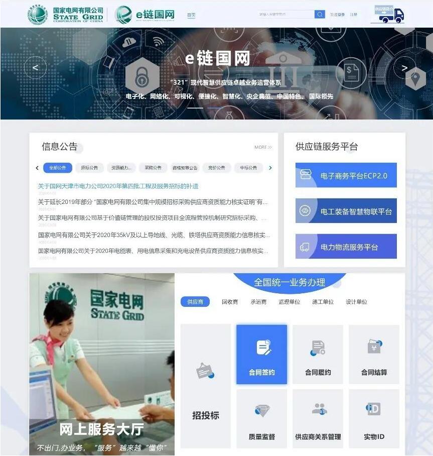 “e鏈國網(wǎng)”秉持“一網(wǎng)通辦”理念,通過前端頁面集成、整合智慧供應(yīng)鏈后端各支撐業(yè)務(wù)系統(tǒng),為國家電網(wǎng)公司內(nèi)外部用戶提供一站式、全方位、便捷化的業(yè)務(wù)引導和信息共享服務(wù)。