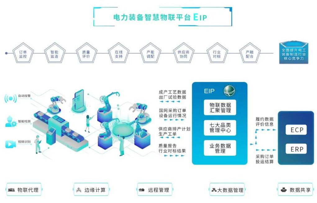 電工裝備智慧物聯(lián)平臺EIP(Electrical Equipment Intelligent IOT Platform)著力實現(xiàn)“物聯(lián)一張網(wǎng)”,構(gòu)建供需雙方開放互信的物聯(lián)平臺,利用物聯(lián)技術(shù)打通了供需雙方的數(shù)據(jù)壁壘,實現(xiàn)供應(yīng)鏈供需協(xié)同、數(shù)據(jù)共生共享。