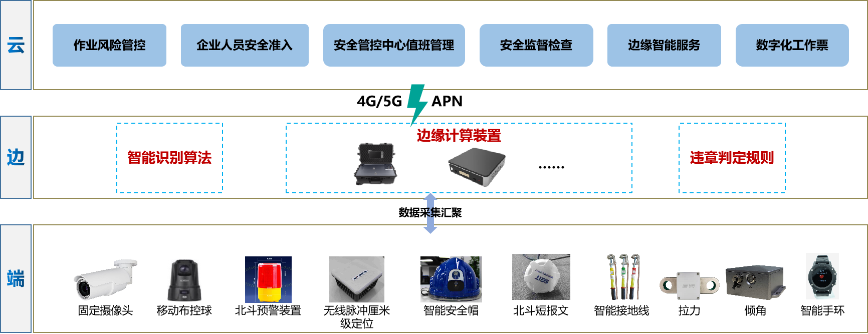 “智能終端”是現(xiàn)場(chǎng)數(shù)字化安全管控的感知末梢,主要支持WIFI、LORA等通信模式,整合了“電力北斗厘米級(jí)定位終端、北斗短報(bào)文、北斗預(yù)警裝置、智能安全帽、無(wú)線脈沖厘米級(jí)定位(UWB)終端、智能安全繩、智能接地線、氣體檢測(cè)儀、拉力傳感器”等10余種智能終端,可實(shí)現(xiàn)電子圍欄自動(dòng)部署、安措語(yǔ)音個(gè)性播報(bào)、定位與視頻聯(lián)動(dòng)等功能,并可與違章管控點(diǎn)融合,滿足與業(yè)務(wù)判定、作業(yè)內(nèi)容,安全措施、工作狀態(tài)的有效匹配、校核聯(lián)動(dòng),準(zhǔn)確對(duì)作業(yè)風(fēng)險(xiǎn)及時(shí)提醒、違章行為自動(dòng)告警,實(shí)現(xiàn)作業(yè)現(xiàn)場(chǎng)智能化、數(shù)字化安全管控。