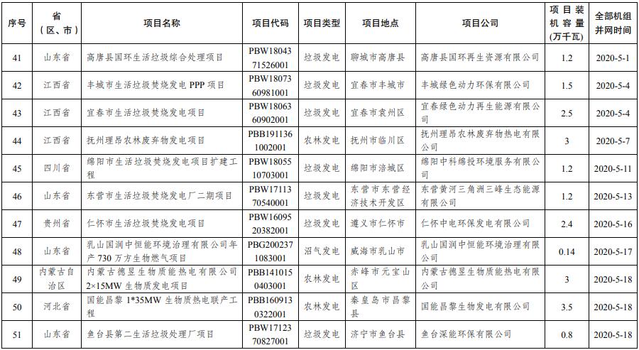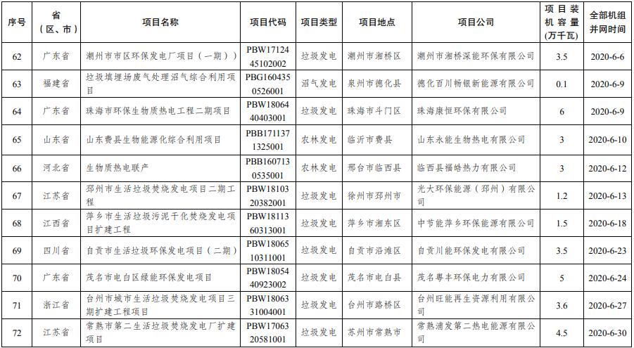 關于公布2020年生物質發(fā)電中央補貼項目申報結果的通知