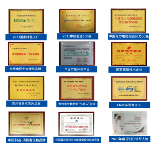 固達電線擁有國家專利68項,通過了德國萊茵TÜV認證、歐盟RoHS、美國UL、澳洲SAA等多項國際權威認證,行業(yè)首批通過“中國環(huán)保產(chǎn)品”認證,貴州行業(yè)首家通過“CQC防火產(chǎn)品認證”;榮獲了“國家級綠色工廠”“中國電線電纜十大綠色品牌”“中國電力電纜供應商綜合實力50強”、《品牌中國》重點推薦品牌、新華網(wǎng)《品質(zhì)國貨》、“國家高新技術企業(yè)”、專精特新“小巨人”企業(yè)、“貴州省重點龍頭企業(yè)”“貴州民營企業(yè)100強”“貴州企業(yè)100強”“貴州制造業(yè)十大品牌”“貴州省品牌價值30強”企業(yè)標準領跑者“等多項殊榮,現(xiàn)已成為西南最具成長力及競爭力的線纜品牌。
