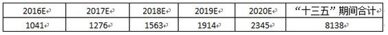在2006至2011年的規(guī)?;こ虘秒A段,行業(yè)產值復合年均增速為21%,在2011年至2015年的全面推廣階段這一數(shù)值達到30%。目前雖然我國城鎮(zhèn)污水處理率已達90%,污水處理產能增長空間有限,但考慮到存量處理能力改造,再生水回用和工業(yè)廢水處理的潛在市場空間,以及排放指標進一步收嚴,民眾對于選擇先進環(huán)保技術的心理傾向等因素,“十三五”期間膜法水處理行業(yè)產值年均增速大概率落在20%-25%。取中位數(shù)22.5%進行計算,到2020年行業(yè)產值達到約2345億,整個“十三五”膜法水處理產值可達8138億元。