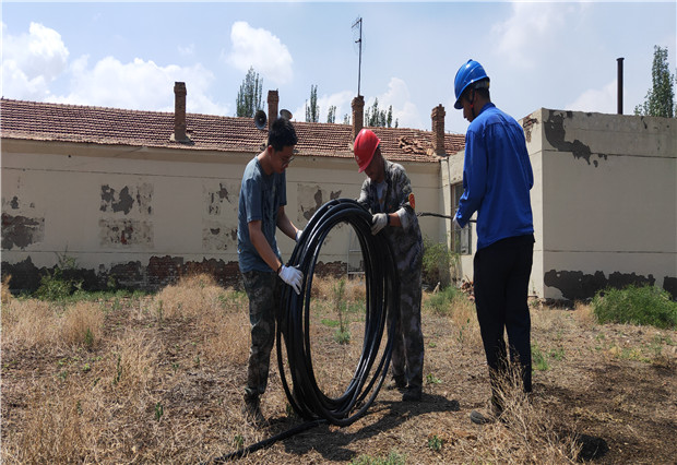 在了解情況后,烏海電業(yè)局工會(huì)扶貧辦積極與養(yǎng)殖場(chǎng)當(dāng)?shù)氐牧逅墓╇姺志謱?duì)接。分局工作人員立刻前往逸夫小學(xué)扶貧養(yǎng)殖基地對(duì)整個(gè)院子進(jìn)行了巡視,確定了電纜敷設(shè)的方案以及配電室的接線(xiàn)方式。第二天正值周末,六五四分局工作人員便進(jìn)場(chǎng)施工。9名工作人員分工合理同時(shí)開(kāi)工,鋪電纜、沿墻固定、埋電纜、配電室布線(xiàn)接電。烈日炎炎,在這場(chǎng)耐力與體力的考驗(yàn)中,即使汗水浸濕了大家的衣服也絲毫沒(méi)有拖慢工作的進(jìn)程,工藝也沒(méi)有因此打了折扣,最后大家齊心協(xié)力共同完成了420米電纜鋪設(shè)及接火停電的工作。