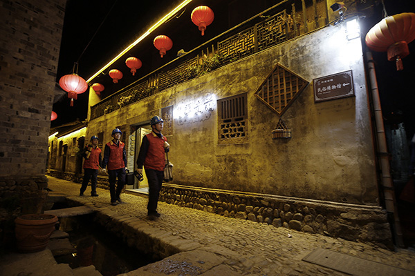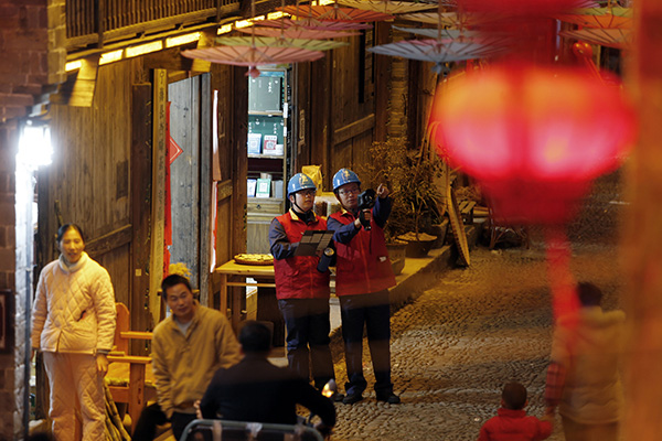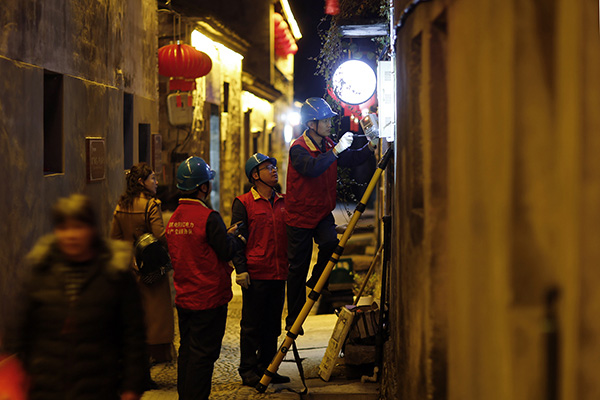 夜幕降臨,前童古鎮(zhèn)條條古巷的燈光開始亮起來,但古巷旁水渠里仍倒影著隊員們忙碌的身影。有了國網(wǎng)寧??h供電公司工作人員不辭辛勞的保供電,留浙過年的新寧海人在前童古鎮(zhèn)這個元宵節(jié)將過得格外溫暖。