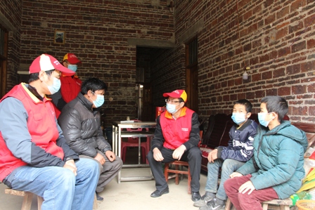 今年受新冠病毒疫情的影響,學(xué)校還未正常開學(xué),孩子們都在家中自行學(xué)習(xí),隊員采取逐戶上門探望的方式開展服務(wù)活動。在李志成、李志祥同學(xué)家中,兩兄弟正一起埋頭溫習(xí)功課,看到‘紅馬甲’叔叔們在這個時期里來到家里,兩兄弟高興得跳了起來,大聲的呼喊在對面山上挖筍的爸爸趕快回家。兄弟倆的媽媽離家出走十多年未回,爸爸又患上了間歇性精神病,三父子相依為命,生活來源主要依靠農(nóng)村低保補助和叔叔的資助,家境貧困令人心酸。看到兩兄弟興高采烈地拿著叔叔們給的‘紅包’,李爸爸眼中充滿了晶瑩和感動,緊緊地握著隊員們的手無法言語。李依婷同學(xué)是六年級班上唯的女生,文靜秀氣不愛言語,由于父母離異后紛紛外出,小依婷跟著年邁的奶奶共同生活,學(xué)習(xí)非常刻苦,成績在班上排名前列,隊員們?yōu)樗蜕狭伺D毯臀繂柦?,和她一起翻閱了學(xué)習(xí)筆記,親切鼓勵她要努力學(xué)習(xí),好好報答奶奶的養(yǎng)育之恩···