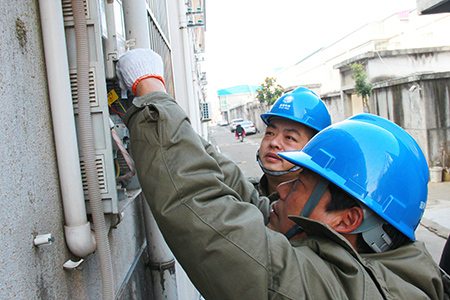 中國電力網(wǎng)訊  1月11日,江蘇連云港東??h供電公司營銷管理人員吳東華、李金在牛山鎮(zhèn)王東村檢查用戶表計(jì)用電情況。