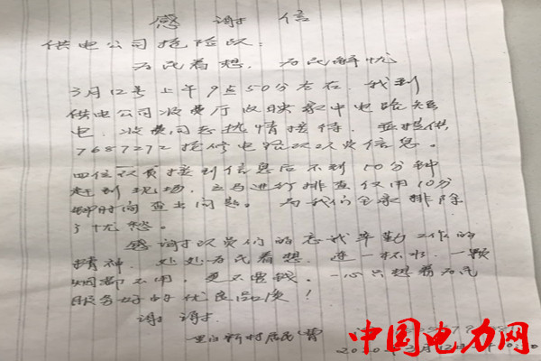 中國(guó)電力網(wǎng)訊 我看你們是真正的好人。”3月12日,國(guó)網(wǎng)蒙城縣供電公司開(kāi)發(fā)區(qū)中心供電所城市營(yíng)業(yè)大廳里,一位“不速之客”握著李雪梅主仼的手連聲道謝;來(lái)客是一里白新村居用電戶(hù)民曹澤,今天上午特地過(guò)來(lái)感謝開(kāi)發(fā)區(qū)中心供電所城市營(yíng)業(yè)大廳幫助他家檢修緊用10分鐘時(shí)間查出問(wèn)題。這是國(guó)網(wǎng)蒙城縣供電公司營(yíng)業(yè)廳全部恢復(fù)營(yíng)業(yè)辦理第一件事。