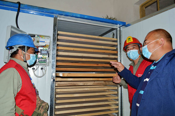 “齊書記,3個接電工作日正趕上五一長假,我們怕廠家調(diào)試烘干設(shè)備時間緊影響生產(chǎn),就提前來了。”施工當(dāng)天,黃永亮一邊和服務(wù)隊員做好施工前的防疫消殺工作,一邊向齊志強解釋。