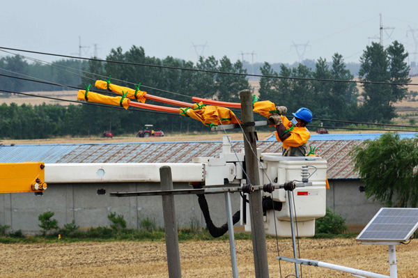 “張主任,陳廟一級站是2011年中央小農(nóng)水重點縣項目,專變停運時間長,村里抗旱想重新啟用專變。專變6月5日的試驗合格報告在這兒?,F(xiàn)在需要安裝表箱表計、更換老化嚴重的10千伏引下線。”6月5日下午,陳豐功匆匆來到薛集供電所,向供電所主任張鵬求助,“這幾天持續(xù)高溫,村里打算用泵站進行一級提灌,把低洼處的水提灌到高處,服務(wù)4個小組的1900畝莊稼抗旱……”