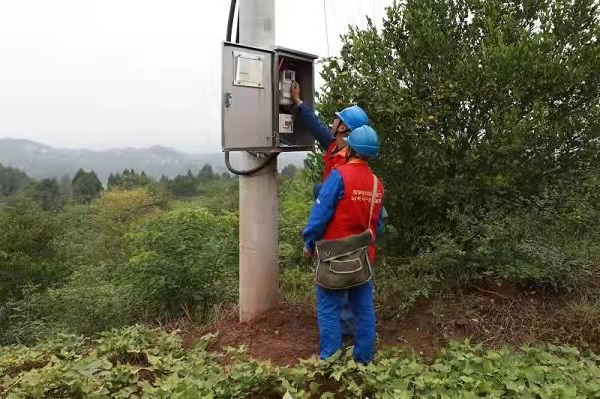 共產(chǎn)黨員服務隊隊員檢查用電線路設備