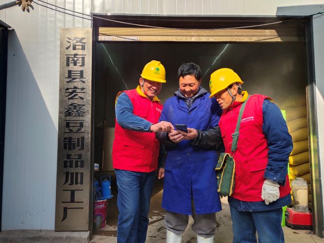中國電力網(wǎng)訊(通訊員 李孟仁) 在年末生產(chǎn)的關(guān)鍵時期,企業(yè)用電保障至關(guān)重要。12月 26日上午11時,陜西商洛洛南縣景村鎮(zhèn)油泉村的宏鑫豆制品加工廠內(nèi)一片繁忙景象。此時,國家電網(wǎng)陜西電力張思德共產(chǎn)黨員服務(wù)隊(商洛洛南分隊)景村供電所小隊隊員何清珍、張平亮,身著紅馬甲、頭戴安全帽,背著工具包,帶著萬用表、筆記本和微信群這“三件寶”,走進(jìn)了生產(chǎn)車間檢查用電設(shè)備。