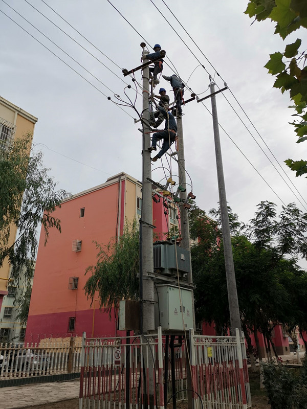 10KV配網線路老化,連隊危房改造房屋拆除后,進戶線凌亂,對地安全距離不夠,電線桿根堿化嚴重。存在安全隱患。本次升級改造更換為相應電壓等級的絕緣導線,15m電線桿設計,絕緣子全部換新,將現(xiàn)有單回路改造為雙回路。屬地現(xiàn)場負責人運檢隊長劉朋舉和運檢隊全隊人員分片跟施工隊進現(xiàn)場,及時檢查、督促,對進度實時糾偏,隨時解決問題和提出改進意見。緊抓施工質量和進度、安全。施工停電前一天通知用戶,重要用戶提前兩天通知到位。所安全員王勝利負責施工現(xiàn)場安全監(jiān)督,對施工人員持證上崗、安全防護用具、安全措施等開展現(xiàn)場監(jiān)督。與團農發(fā)辦、施工隊積極開展對接工作,發(fā)揮屬地管理作用。