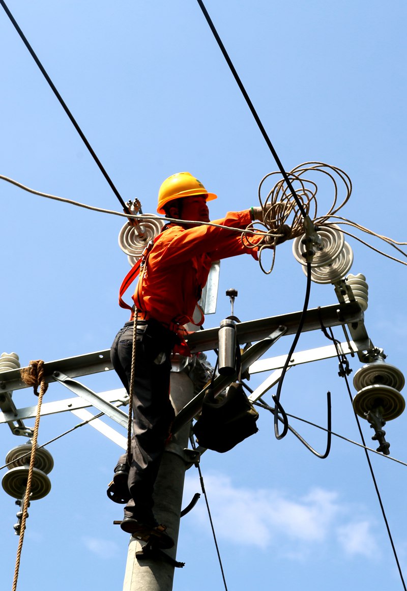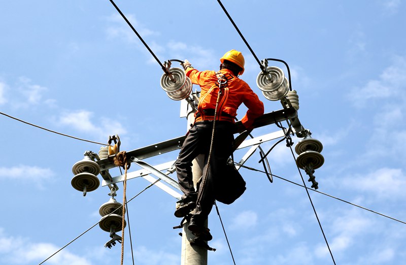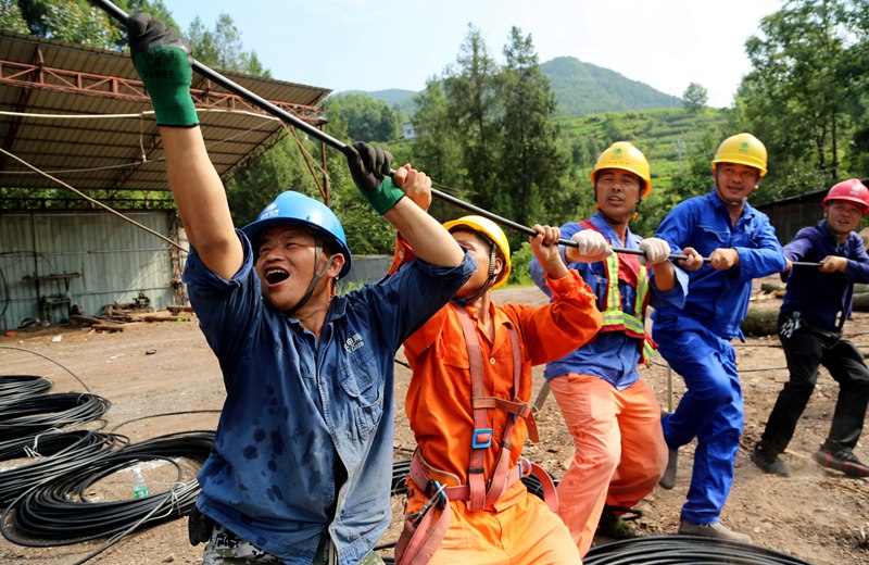 中國電力網(wǎng)訊 2020年7月9日,高溫天氣下,國網(wǎng)四川省巴中市通江縣供電公司施工人員在10千伏涪草線七水村支線防山火整治施工現(xiàn)場,進(jìn)行放緊線作業(yè)。程聰攝