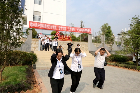 上午10時許,鳳慶供電局演練總指揮在消防控制室發(fā)出演練信號,演練模擬鳳慶主城區(qū)發(fā)生6.5級破壞性地震,鳳慶供電局辦公樓開始搖晃,樓內(nèi)所有人員立即采取避震措施。避震一分鐘后,從一樓到四樓,各樓層緊急疏散負(fù)責(zé)人冷靜組織本樓層人員按最近、最佳疏散路線撤離至安全聚集地,快速清點人數(shù),并向總指揮匯報人員撤離情況。