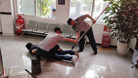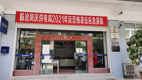 在反恐怖襲擊演練中,本次演練以該局鳳慶營業(yè)廳內(nèi)突然出現(xiàn)2名不明身份窮兇極惡的持刀恐怖分子,挾持1名安保人員為演練假定場景。演練營業(yè)廳值班人員信息報告、應(yīng)急響應(yīng)啟動、人身救援、通訊聯(lián)絡(luò)等現(xiàn)場應(yīng)急處置過程。演練現(xiàn)場, 2名持刀窮兇極惡的恐怖分子以辦事為由,在保安人員正當詢問及登記之際,恐怖分子手持管制刀具強行推開營業(yè)廳門闖入廳內(nèi),企圖用砍刀襲擊現(xiàn)場保安工作人員并直奔營業(yè)廳平臺破壞電力營業(yè)收費管理正常秩序。營業(yè)廳工作人員立即向應(yīng)急辦值班室匯報,應(yīng)急辦主任聽取應(yīng)急辦值班室匯報后,立即做出啟動生產(chǎn)辦公場所反恐怖襲擊事件(四級)應(yīng)急響應(yīng)的決定,安排有關(guān)保安和工作人員對現(xiàn)場進行處置,保安人員并及時持盾牌、鋼叉等警用設(shè)備與暴徒對峙,采取應(yīng)急處置措施,終將恐怖分子制服。