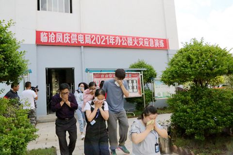 在火災(zāi)演練中,演練模擬鳳慶供電局辦公大樓發(fā)生火災(zāi),當聽到警鳴聲后,正在上班的員工們沒有驚慌失措,按照突發(fā)應(yīng)急預(yù)案,在各樓層疏散負責(zé)人引導(dǎo)下,按照火災(zāi)逃生要求,用濕毛巾捂住口鼻,彎腰低行,有序地從辦公樓4個消防安全樓道疏散撤離。疏散過程中沒有出現(xiàn)堵塞、爭先恐后、推撞踩踏的現(xiàn)象。全體員工們到達安全場地時,立即集合,清點人數(shù),發(fā)現(xiàn)未有辦公人員被困于發(fā)電機房及辦公場所。