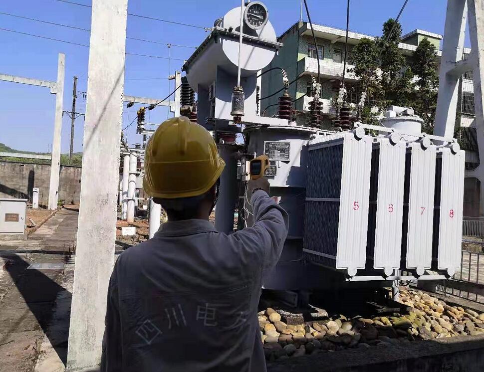 8月1日,國網(wǎng)南充市高坪供電公司工作人員對35千伏安平變電站主變特巡測溫。(何光雄 攝)
