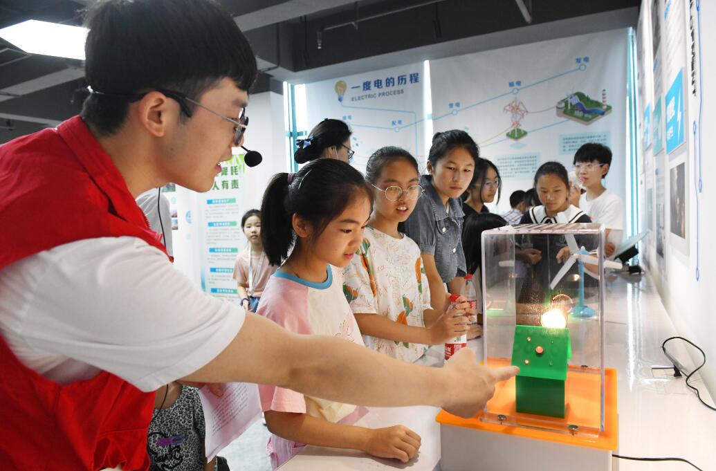 中國電力網(wǎng)訊 (通訊員 苗云夢)“小朋友們知道一度電是怎么來的嗎?”7月14日上午,在國網(wǎng)余姚市供電公司新時代文明實踐基地內(nèi),該公司大城小愛志愿者張楊歡正給近30名學生講解一度電的故事,帶領(lǐng)他們在學習探索中感受安全用電的重要性。