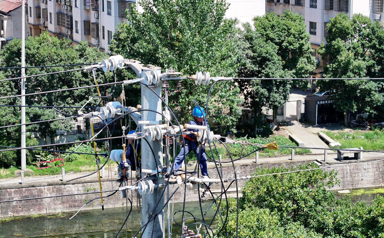 當(dāng)天施工現(xiàn)場共有60余名電力工人,分布在13個點(diǎn)位上各自忙碌。“考慮到高溫天氣,我們早上五點(diǎn)就早早開工,采取‘兩頭搶中間歇’的模式搶抓工期,并為工人們備好了藿香正氣水等防暑降溫用品。”陳浮說。