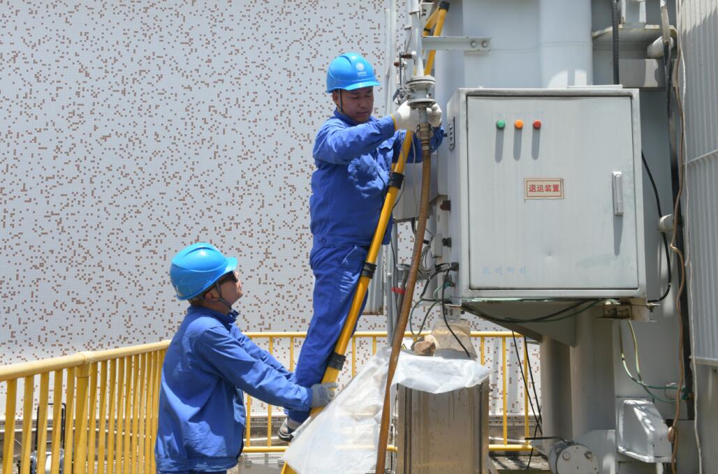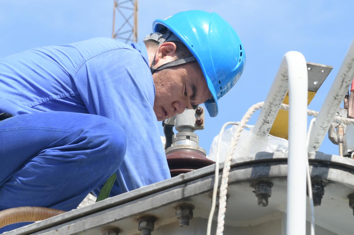 刺眼的烈日給檢修工作帶來不少影響,此時主變上的溫度已近50度,檢修人員們克服高溫穩(wěn)步推進(jìn)各項(xiàng)工作,不一會兒曬紅的臉頰也掛滿了汗水,衣服也被浸濕。隨著檢修人員將分接開關(guān)裝復(fù)、充油,完成主變診斷性試驗(yàn),至20點(diǎn)37分,全部工作順利完成。