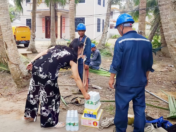 “感謝你們千里迢迢從貴州來支援我們,幫助我們搶修復(fù)電,太感動了!”海南省文昌市東郊鎮(zhèn)文龍村村民說到。村民們看著搶修人員辛苦的模樣,自發(fā)給大家送來了水和飲料解渴降溫,還為搶修人員帶路,加快搶修進(jìn)度。