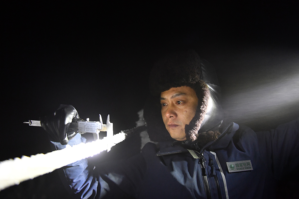 本輪寒潮期間,湖南省提前布置51套主網(wǎng)、142套配網(wǎng)融冰裝置,8300多名電力工人隨時待命,做好雨雪、冰凍、強風(fēng)等異常天氣下的設(shè)備特巡和特護(hù),守護(hù)電網(wǎng)安全,守護(hù)萬家燈火。(新華社記者 陳振海 攝)