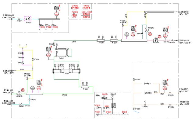 客戶原方案使用1200及本體擴(kuò)展模塊,替代方案為1200+MR30分布式IO,成本降幅為45%;開關(guān)量輸入模塊主要用于連接按鈕、加壓機(jī)運行及故障信號、閥門開到位及關(guān)到位信號;開關(guān)量輸出主要用于控制指示燈、電磁閥開關(guān)、壓縮泵啟停;模擬量輸入模塊主要用于采集罐體壓力、管道壓力、壓縮機(jī)出入口壓力及溫度、電機(jī)溫度等。