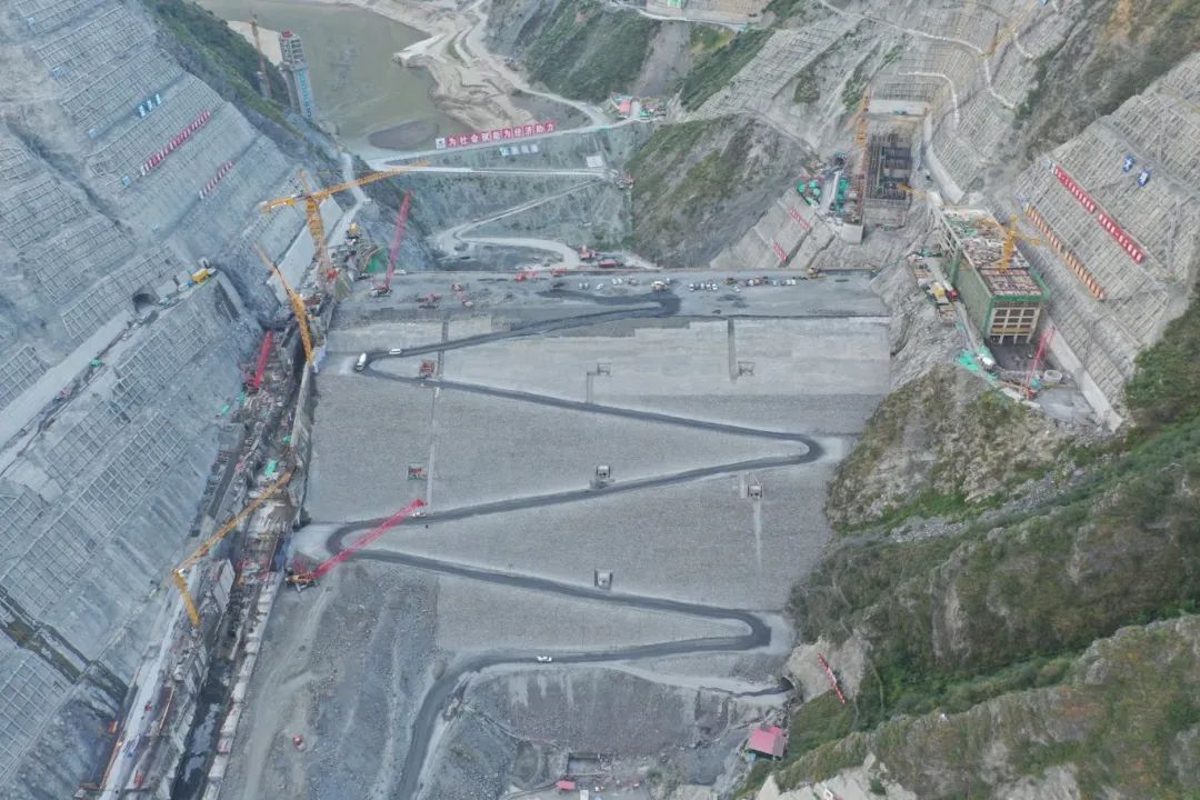 金川水電站大壩壩體坐落于最大深度達(dá)65米的深厚覆蓋層上,趾板建造于強(qiáng)荷巖體上,兩岸邊坡和左岸地下洞室群地質(zhì)條件復(fù)雜,工程建設(shè)質(zhì)量要求高,難度大,工期緊張。施工過程中,項(xiàng)目部優(yōu)化施工組織和強(qiáng)化資源配置,加強(qiáng)現(xiàn)場施工組織協(xié)調(diào),在大壩填筑工程高峰期,單月填筑強(qiáng)度達(dá)60萬立方米;面對地質(zhì)條件復(fù)雜、深厚覆蓋層等困難的挑戰(zhàn),項(xiàng)目部通過反復(fù)試驗(yàn)與專家論證,實(shí)施科學(xué)的強(qiáng)夯加固方案,有效提高壩基的承載力,降低沉降量,確保壩體的穩(wěn)定性。