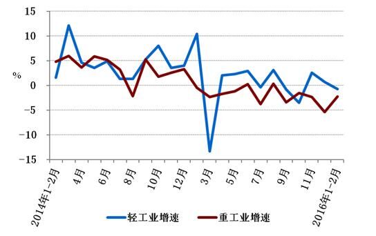 圖2: 2014年以來(lái)分月輕、重工業(yè)用電量增速情況