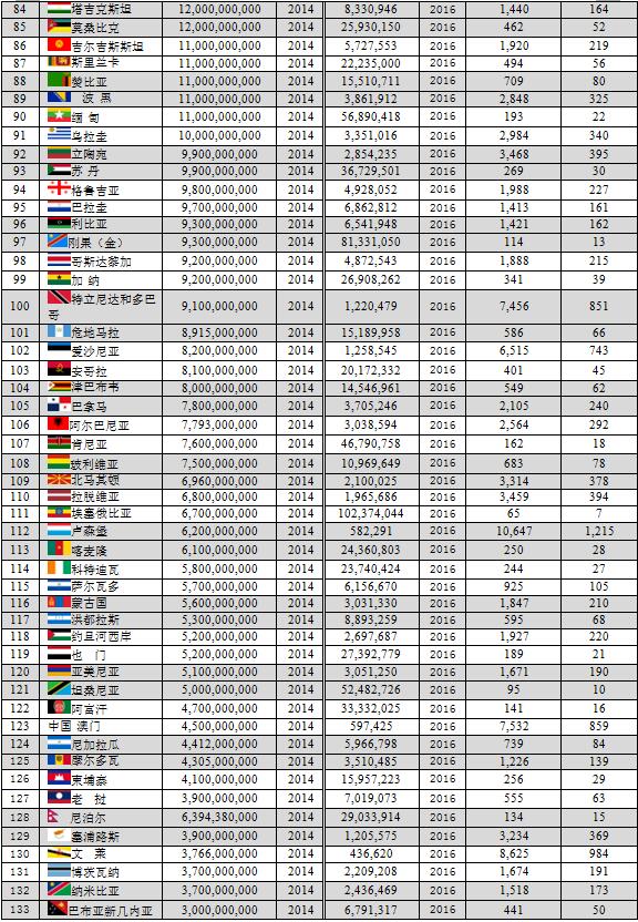 本文數(shù)據(jù)主要由美國中央情報(bào)局(CIA)統(tǒng)計(jì),但個(gè)別國家如中國、印度尼西亞、阿聯(lián)酋、菲律賓、尼泊爾、北馬里亞納群島等由該國的統(tǒng)計(jì)機(jī)構(gòu)統(tǒng)計(jì)。