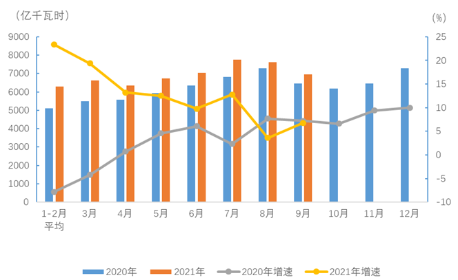 9月份,第一、二、三產(chǎn)業(yè)用電量增速分別為14.9%、6.0%和12.1%;城鄉(xiāng)居民生活用電量同比增長3.7%。
