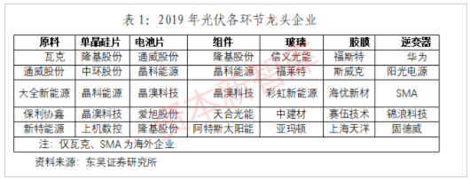 在組件環(huán)節(jié),2按產(chǎn)量排序,2019年前5大廠商分別為晶科能源、晶澳科技、天合光能、隆基股份、阿特斯太陽能。