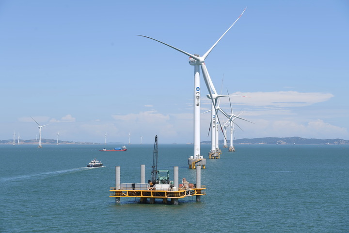 福建三峽海上風(fēng)電國(guó)際產(chǎn)業(yè)園一角(無人機(jī)照片)。新華社記者 林善傳 攝