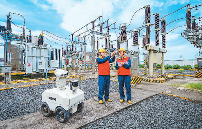 在迎峰度夏電力保供一線,國網(wǎng)嘉善縣供電公司運維人員利用智能機器人和紅外線測溫儀,通過“智能巡檢+人工巡視”方式,