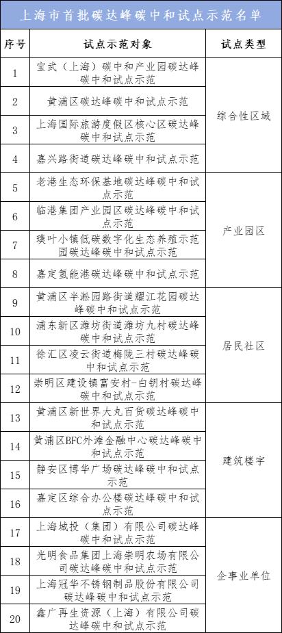 今年8月15日是第二個全國生態(tài)日,在長寧區(qū)舉辦的全國生態(tài)日上海主場活動上,上海首批碳達(dá)峰碳中和試點(diǎn)示范名單公布,包含20個試點(diǎn)示范對象。