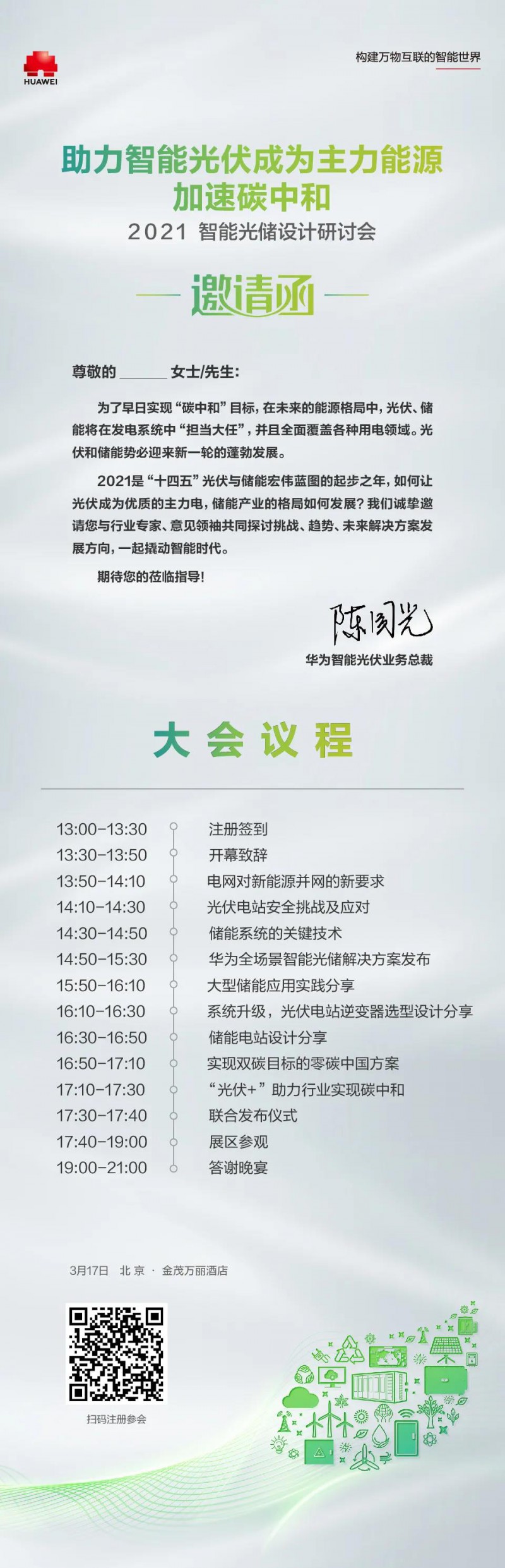 2021是“十四五”光伏與儲能宏偉藍(lán)圖的起步之年,讓光伏發(fā)電可儲可控,已成為能源轉(zhuǎn)型的必然選擇。如何助力智能光伏成為主力能源,促進儲能、光伏產(chǎn)業(yè)協(xié)同良性發(fā)展,是實現(xiàn)我國碳中和目標(biāo)的重中之重。為了盡快迎接零碳時代的到來,3月17日,2021智能光儲設(shè)計研討會即將在北京舉辦,掃描圖片下方二維碼即可報名參會!