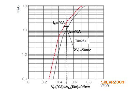 《無(wú)法忽視的真相》一文中,作者以二極管正向耐壓曲線來(lái)杜撰所謂的并聯(lián)二極管分流特性圖,文中錯(cuò)誤地標(biāo)識(shí)圖表,有意夸大事實(shí)、混淆視聽。比如,該圖中列出VF1(20A)= VF2(10A)=0.5mV,而實(shí)際上曲線中的數(shù)據(jù)點(diǎn)指向了0.5V,兩者相差1000倍,這種數(shù)據(jù)如何讓人信服?而在幾天之后的另外一篇文章《一圖看懂超大組件接線盒的安全風(fēng)險(xiǎn)》中,該文作者又悄然將這部分的內(nèi)容刪除,這是典型的信心缺失。